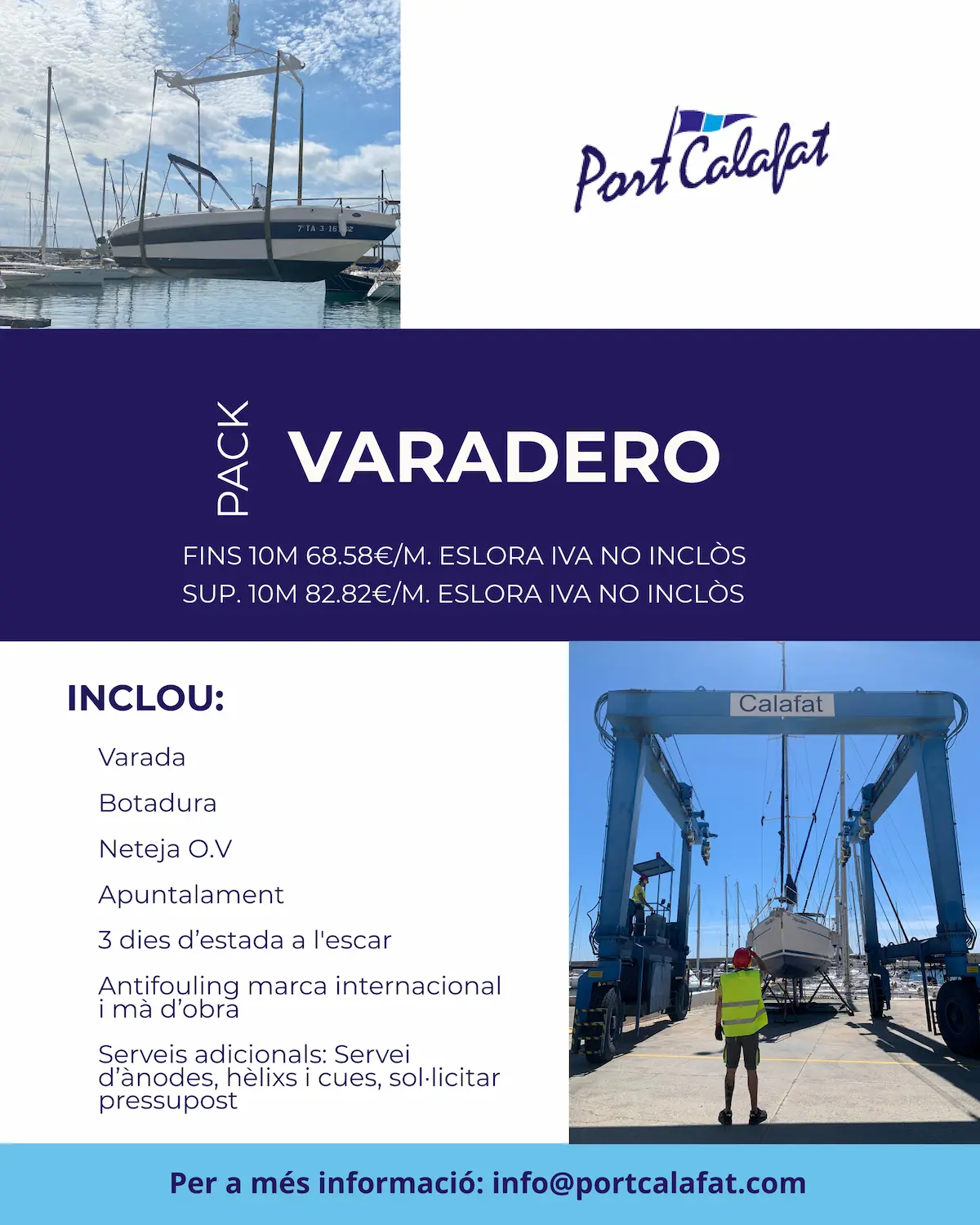Protege tu embarcación esta temporada en Port Calafat con nuestro servicio de invernaje. Mantenimiento integral y 50% de descuento exclusivo para titulares